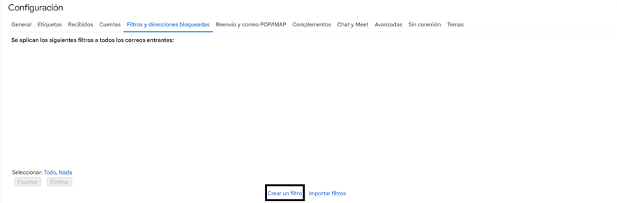 - Hacer clic en “Crear un filtro”.