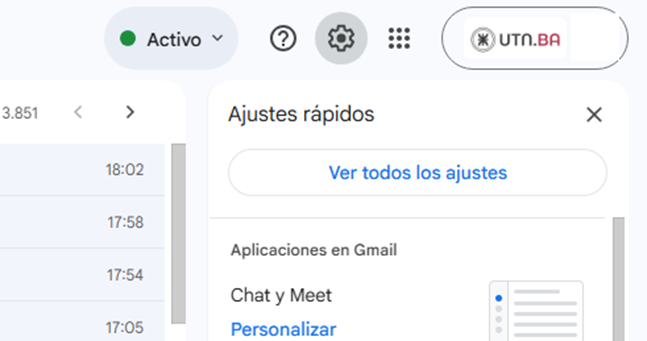 - Hacer clic en el ícono de Configuración (engranaje) ubicado en la esquina superior derecha.
