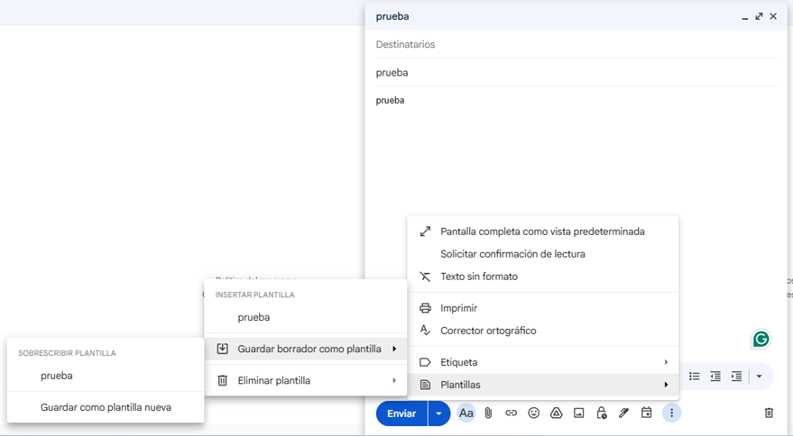 - Elegir “Guardar borrador como plantilla”.