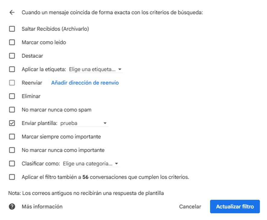 Finalmente, presionar “Crear filtro / Actualizar filtro”.